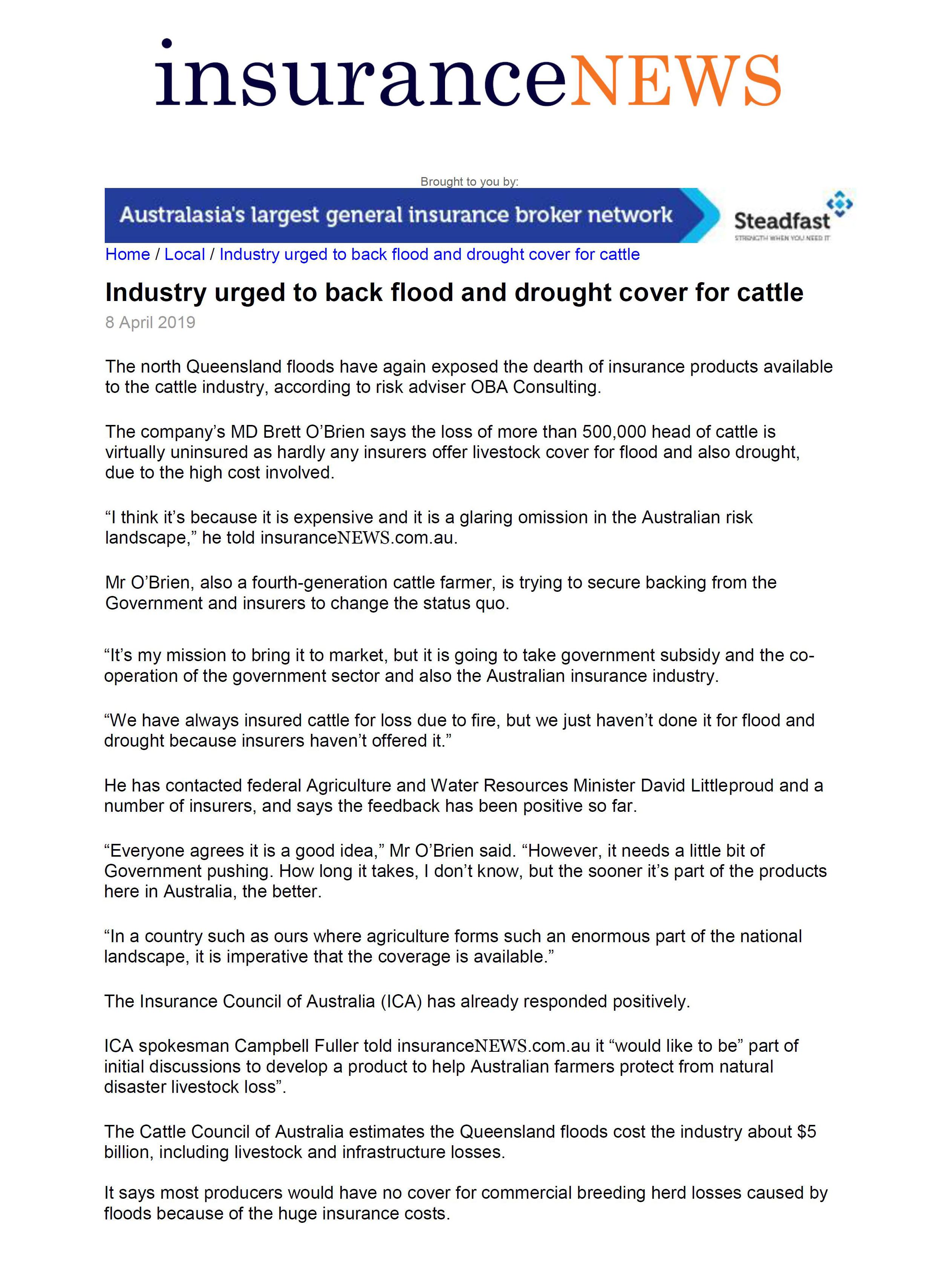 Industry urged to back flood and drought cover cover for cattle